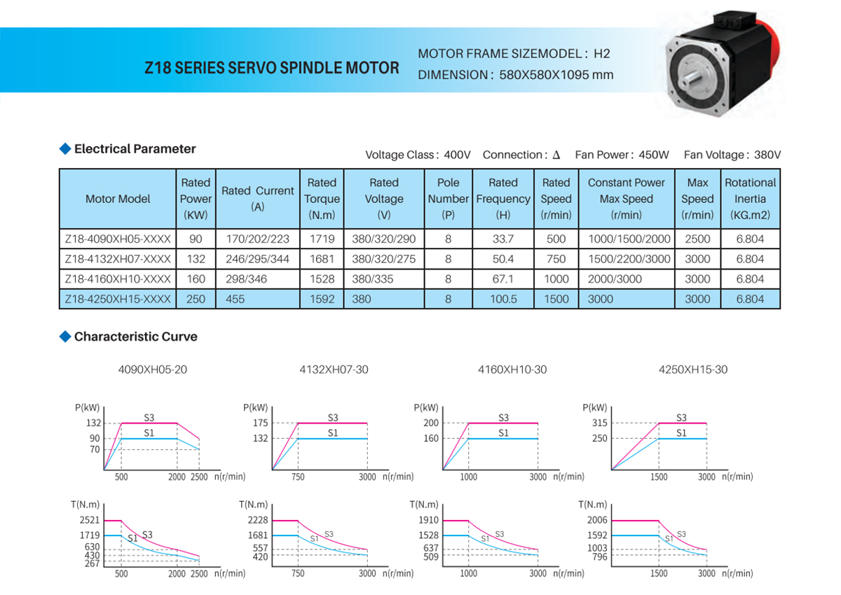 Z18 SERIES SERVO SPINDLE MOTOR—Z18-4090XH07