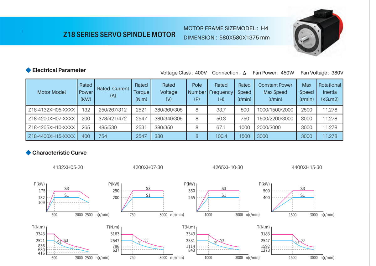 Z18 SERIES SERVO SPINDLE MOTOR—Z18-4132XH15
