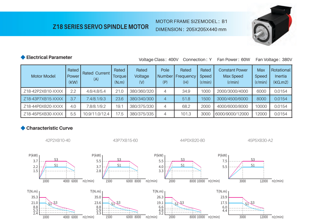 Z18 SERIES SERVO SPINDLE MOTOR—Z18-42P2XB10