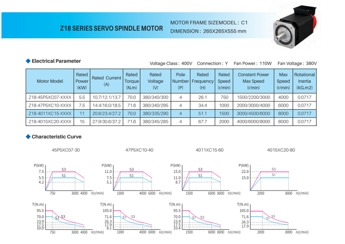 Z18 SERIES SERVO SPINDLE MOTOR—Z18-45P5XC07
